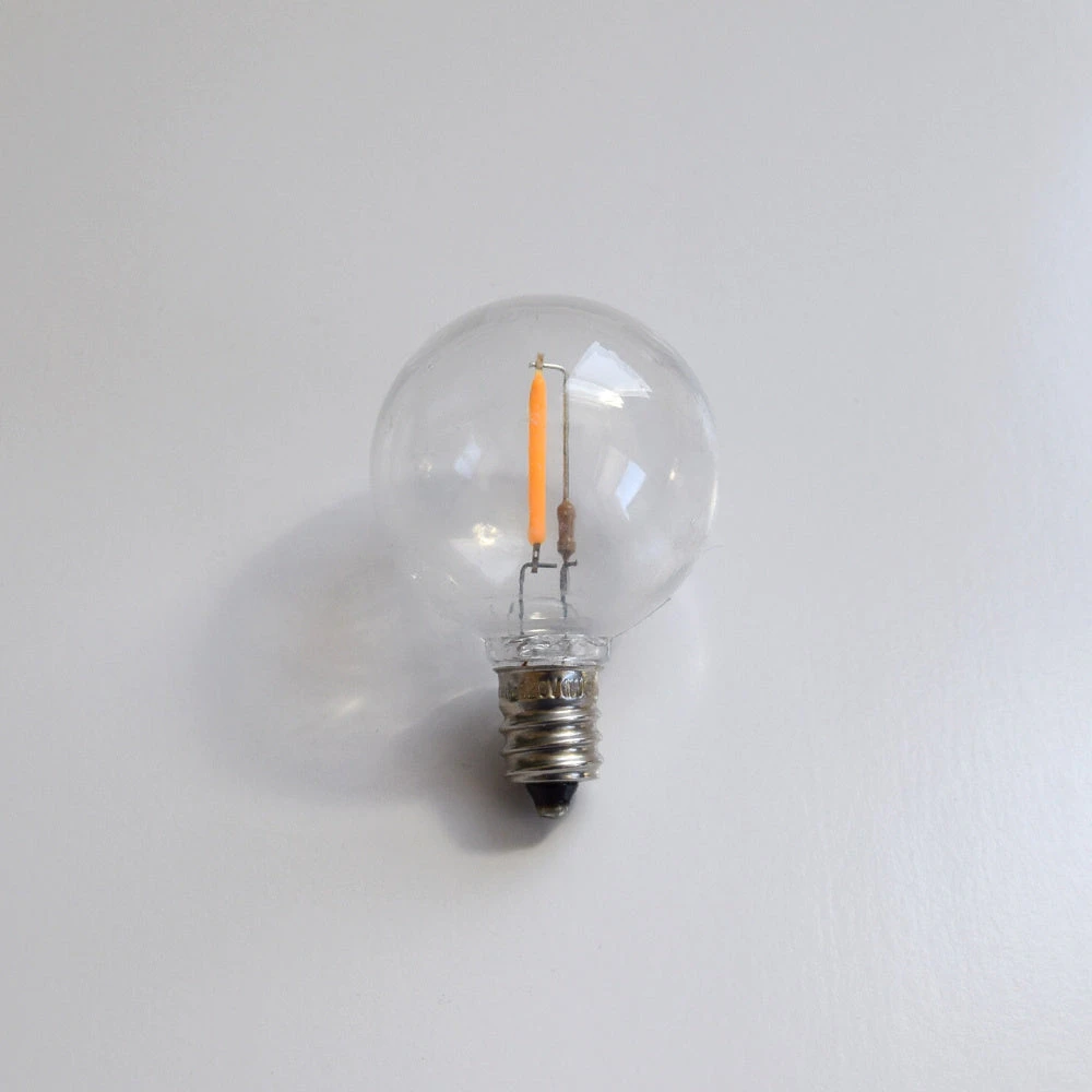 PaperLanternStore presents the next generation LED Bulb with our Shatterproof Light Bulbs! Though not indestructible, our break-resistant light bulbs are made from industrial polycarbonate so you can feel confident they will withstand the wear and tear from whatever location you install them. Our shatterproof bulbs are super-bright as well and have an great Globe bulb look. Worried about the risk of broken glass and replacing glass bulbs? Use these dimmable shatterproof plastic G40 bulbs as replacements in your existing string lights for your Wedding ceremony. These plastic G40 bulbs have a standard E12 base so they will fit into any existing string lights or fixture with E12 Candlelabra base to save you money and energy.