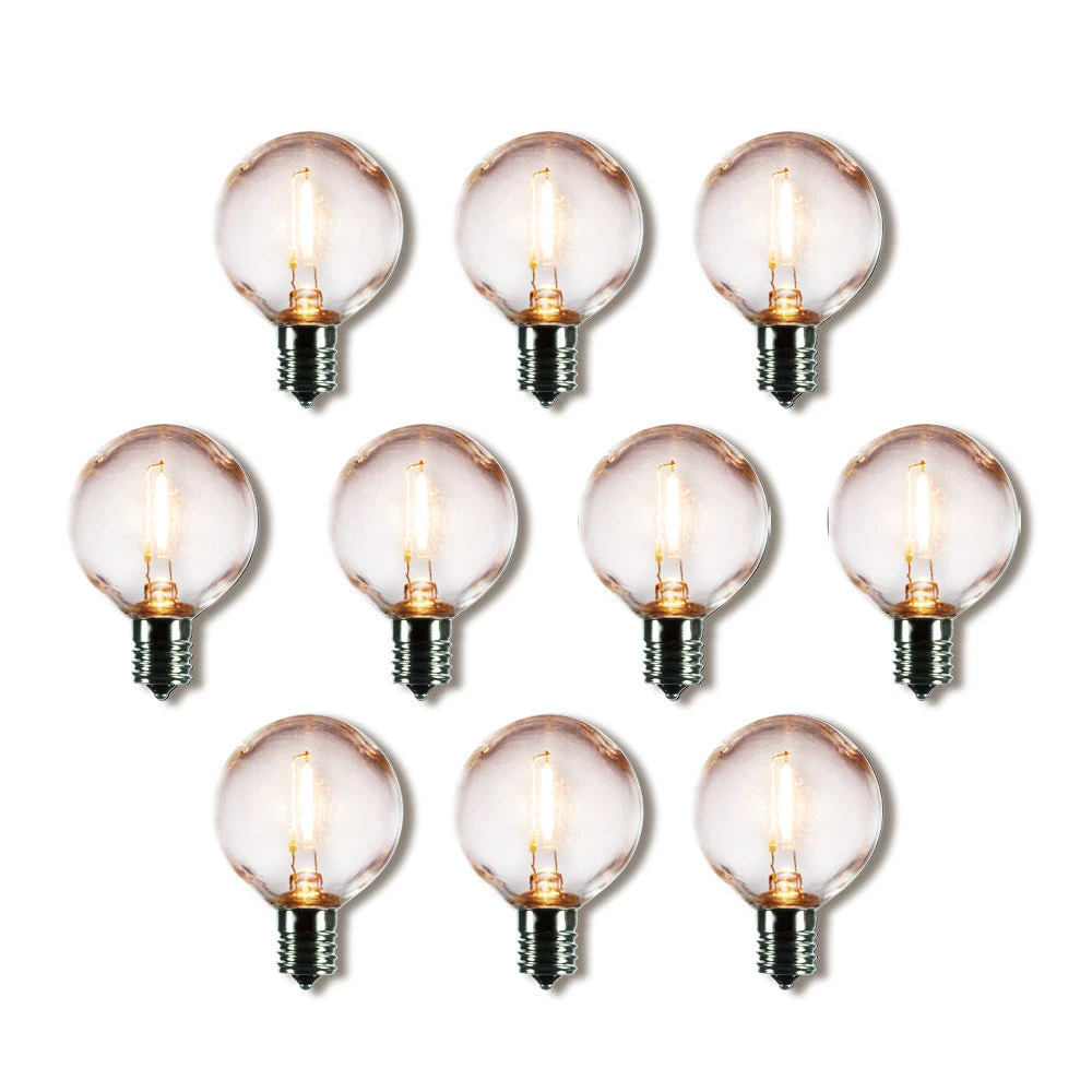PaperLanternStore presents the next generation LED Bulb with our Shatterproof Light Bulbs! Though not indestructible, our break-resistant light bulbs are made from industrial polycarbonate so you can feel confident they will withstand the wear and tear from whatever location you install them. Our shatterproof bulbs are super-bright as well and have an great Globe bulb look. Worried about the risk of broken glass and replacing glass bulbs? Use these dimmable shatterproof plastic G50 bulbs as replacements in your existing string lights for your Wedding ceremony. These plastic G50 bulbs have a standard E17 base so they will fit into any existing string lights or fixture with E17 Intermediate base to save you money and energy.
