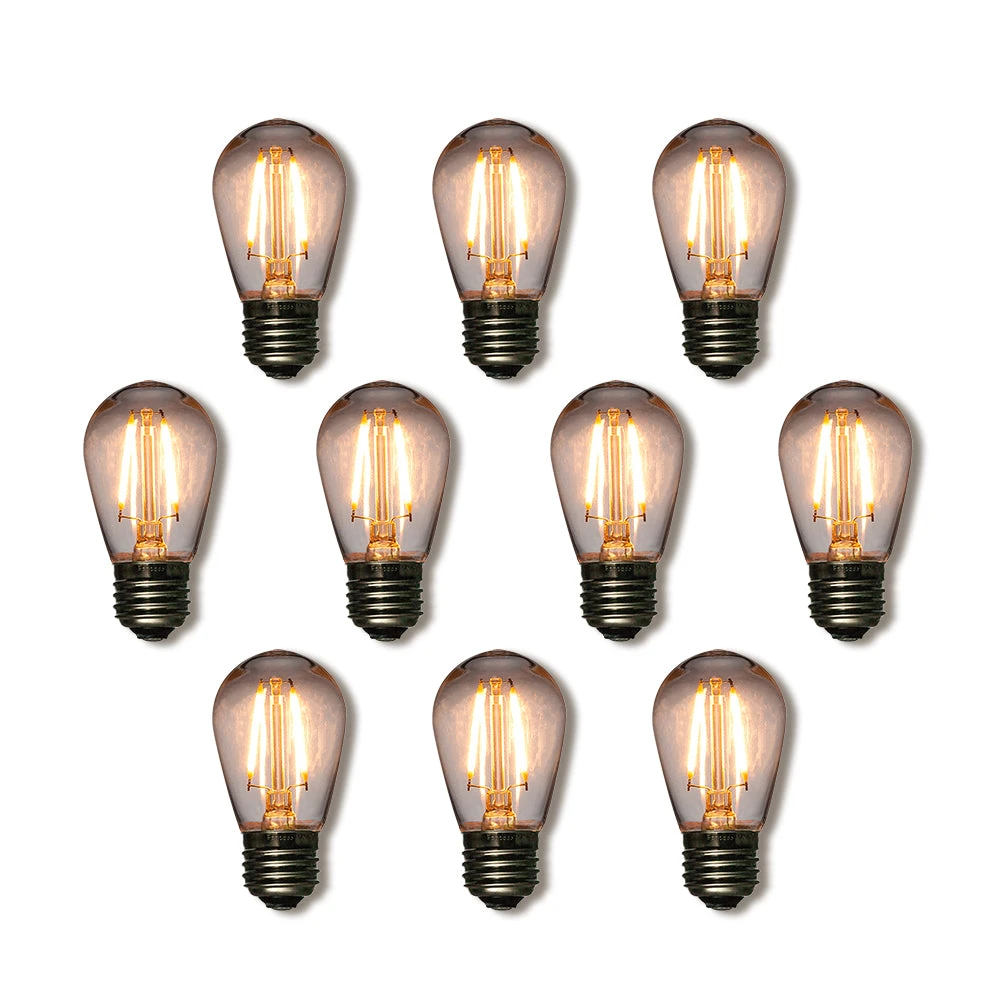 10-Pack. PaperLanternStore presents the next generation LED Bulb with our Warm White Shatterproof Light Bulbs! Though not indestructible, our break-resistant light bulbs are made from industrial polycarbonate so you can feel confident they will withstand the wear and tear from whatever location you install them. Our shatterproof bulbs are super-bright as well and have an great sign bulb look. Worried about the risk of broken glass and replacing glass bulbs? Use these shatterproof plastic S14 bulbs as replacements in your existing string lights for your Wedding ceremony. These plastic S14 bulbs have a standard E26 / E27 base so they will fit into any existing string lights with this standard base or into any typical household light fixture to save you money and energy.