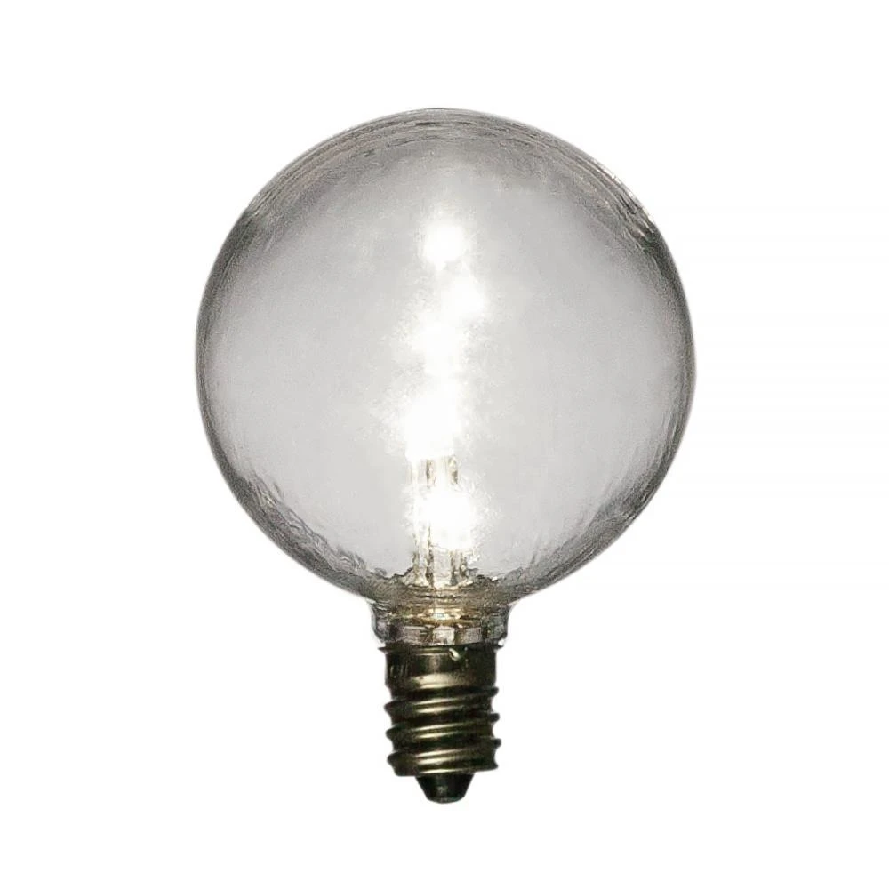 PaperLanternStore presents the next generation LED Bulb with our Shatterproof Light Bulbs! Though not indestructible, our break-resistant light bulbs are made from industrial polycarbonate so you can feel confident they will withstand the wear and tear from whatever location you install them. Our shatterproof bulbs are super-bright as well and have an great globe look. Worried about the risk of broken glass and replacing glass bulbs? Use these shatterproof plastic G40 bulbs as replacements in your existing string lights for your Wedding ceremony. These plastic G40 bulbs have a standard E12/C7 base so they will fit into any existing string lights with a E12 candlelabra base.