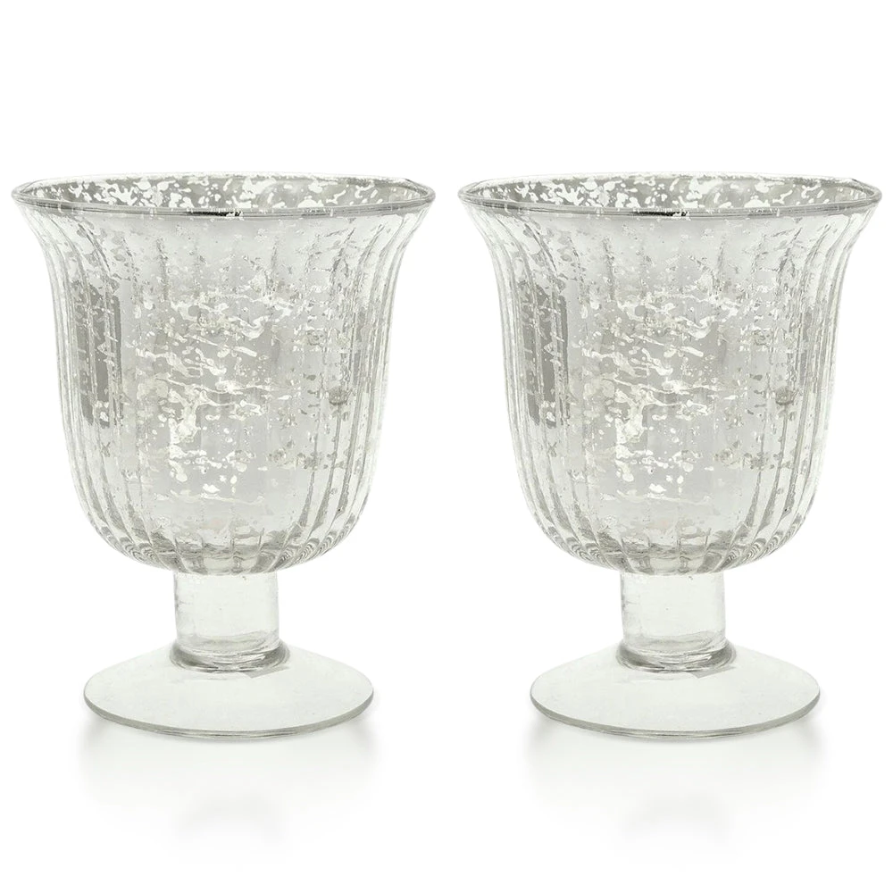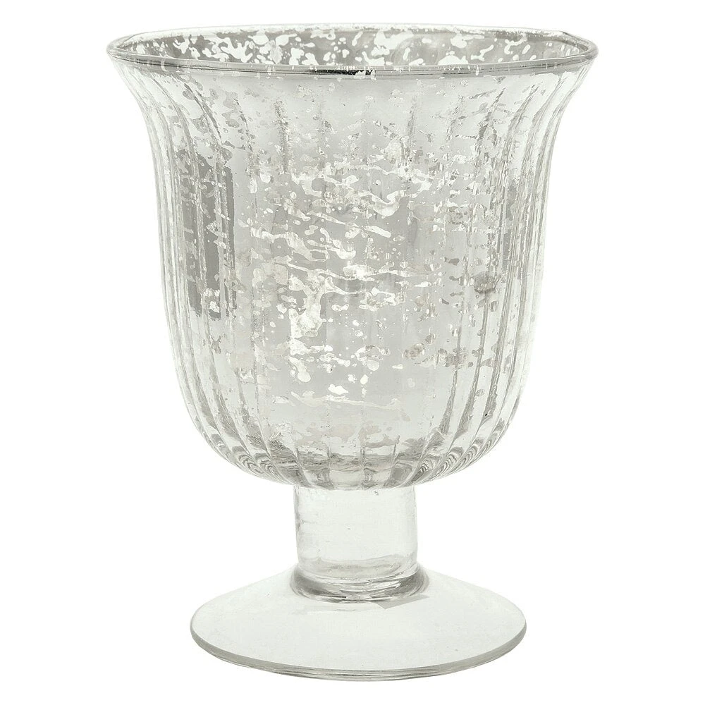 The antiqued metallic finish of this silver mercury glass vase is reflective and shimmery. These urn vases feature a columned design and a beautifully shaped pyriform body with features that create a unique, classy standalone decor accent, bud or flower vase design ideal for home or party decors. Not intended for food use.