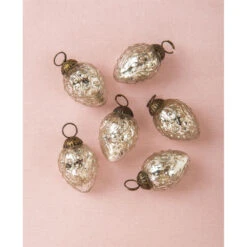 The antiqued-inspired, mercury glass finish of this vase set is delicate and beautiful. Featuring a ruffled top and intricately shaped pyriform body with features that create a unique, classy standalone decor accent, this is a bud or flower vase design ideal for home or party decors. Not intended for food use.
