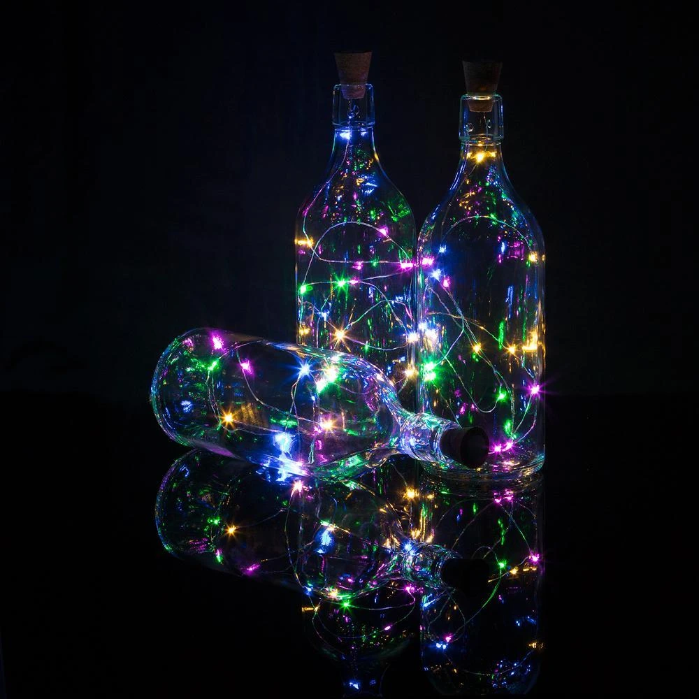 The led cork light is great to add a simple yet effective lighting style to your lounge party venue or restaurant and bar. These lights are ideal for a relaxing environment. Simply add the cork into the top of an empty glass bottle and the 15 Leds attached to the string wire will fill the bottle with pretty lights. Why not lay the string lights across tables window sills or insert into other glass ornaments and jars !
