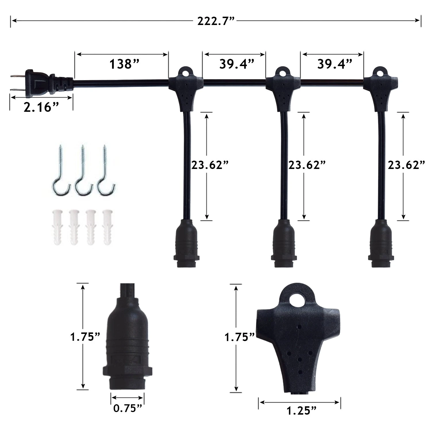 Lighting: Included! Triple Socket Cord – 1x 19FT Outdoor Rated Cord with 3x Evenly-Spaced Sockets and Shatterproof LED Light Bulbs