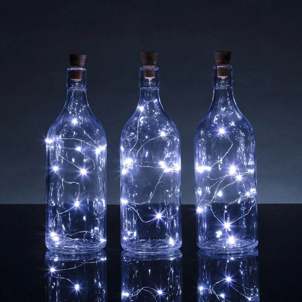 The led cork light is great to add a simple yet effective lighting style to your lounge party venue or restaurant and bar. These lights are ideal for a relaxing environment. Simply add the cork into the top of an empty glass bottle and the 10 Leds attached to the string wire will fill the bottle with pretty lights. Why not lay the string lights across tables window sills or insert into other glass ornaments and jars!