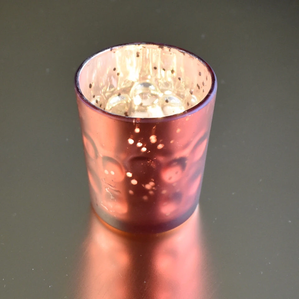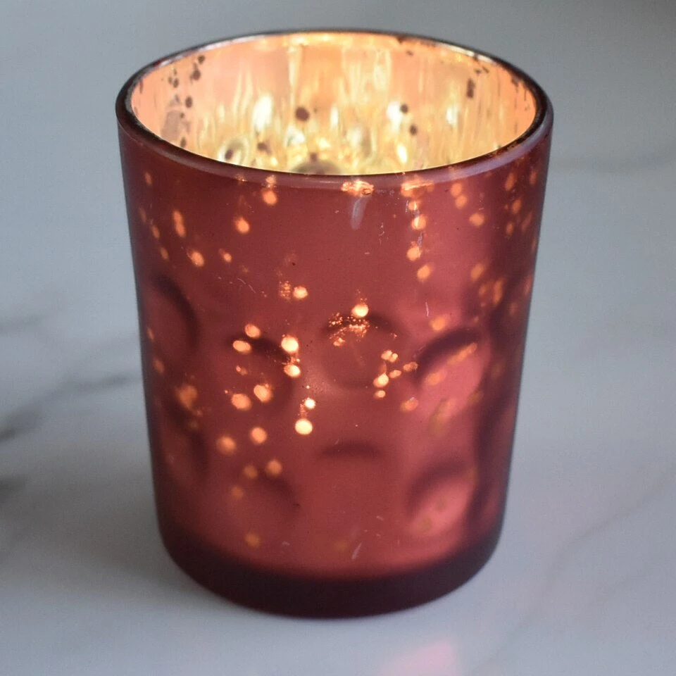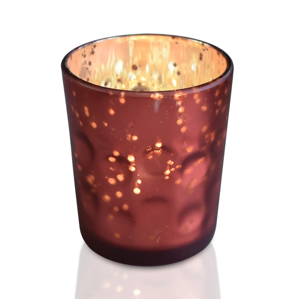 4 Pack | Vintage Mercury Glass Candle Holders (3-Inch, Tess Design, Rustic Copper Red) – For Use With Tea Lights – For Home Décor, Parties And Wedding Decorations