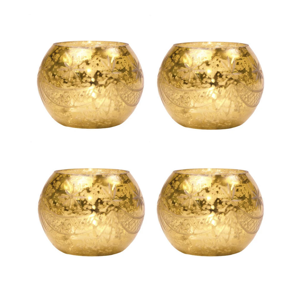 Beautifully-Designed, Rounded Mercury Glass Tea Light Candle Holder