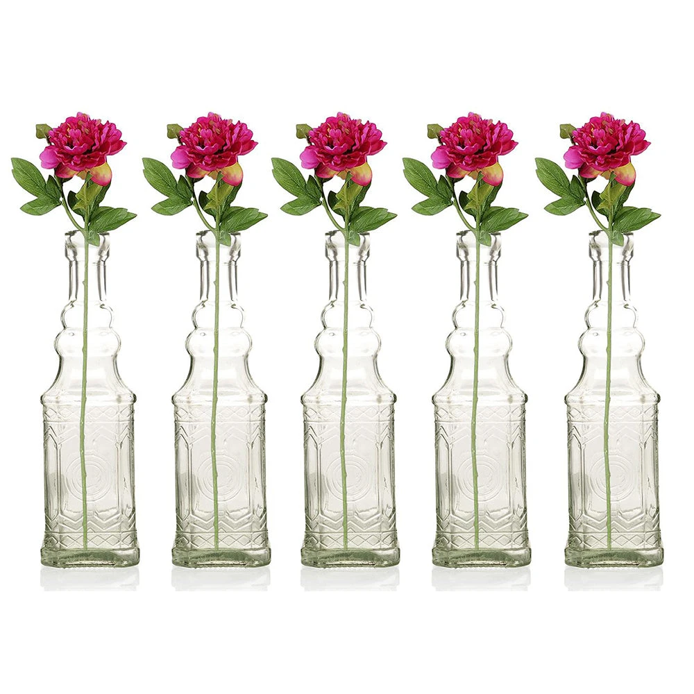 Our new Ella vintage glass bottles and flower vases are perfect for your Wedding dinner party, holiday event or as everyday home decor. This 6.5-inch bottle is made of thick glass and makes for great DIY decorations for dinner settings and Wedding favors . Accent these antique bottles with our Twine / String or Burlap materials for that trendy Rustic look and pair with all of our other Table Top decorations like Candle Holders and votive Tea Lights .