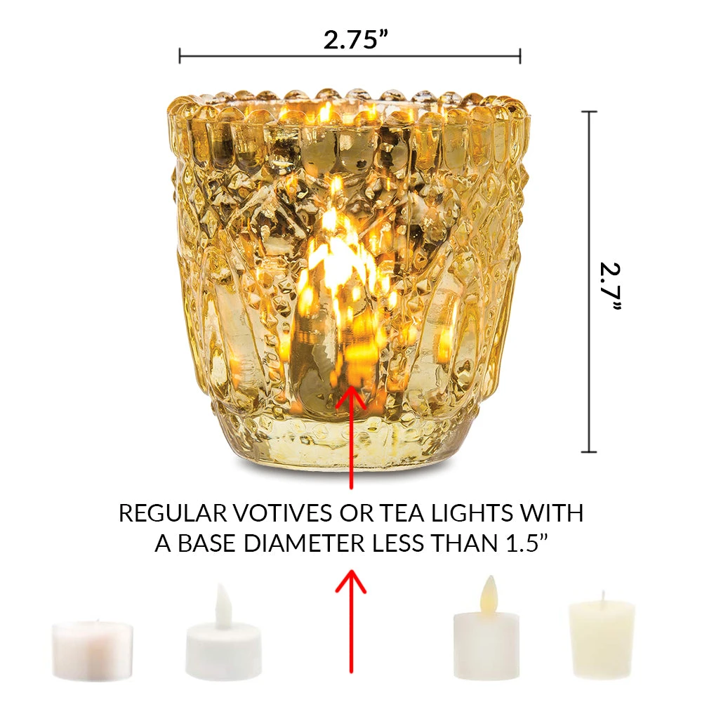 This 2.75-inch� x 2.75-inch� set of candle holders with multi-faceted design is ideal for use with tea lights and can also work to hold votive candles, decorative pebbles, or flowers for everyday use or special occasions. It is the perfect, practical gift that instantly adds a touch of elegance to any room or party!