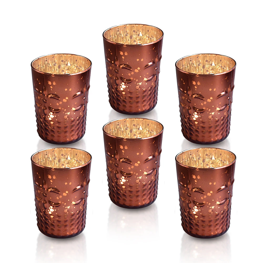 6 Pack | Fleur Mercury Glass Tealight Candle Holders (Rustic Copper Red) For Use With Tea Lights – For Home Decor, Parties And Wedding Decorations – Mercury Glass Votive Holders