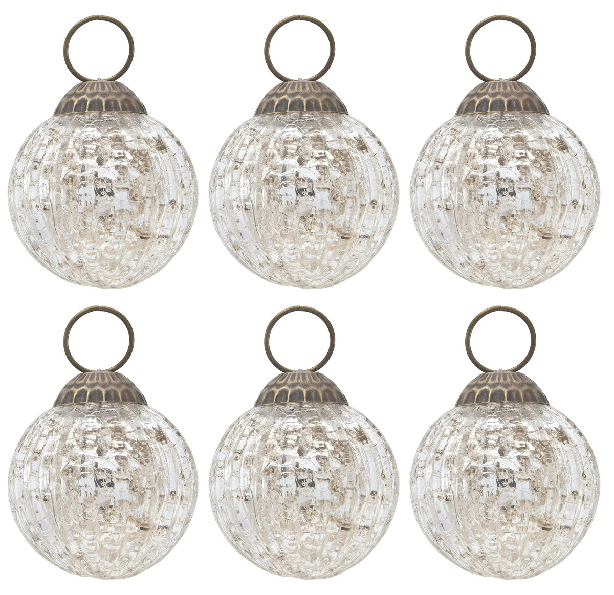 6-pc 2.25″ Mercury Glass Ball Mona Design Ornaments