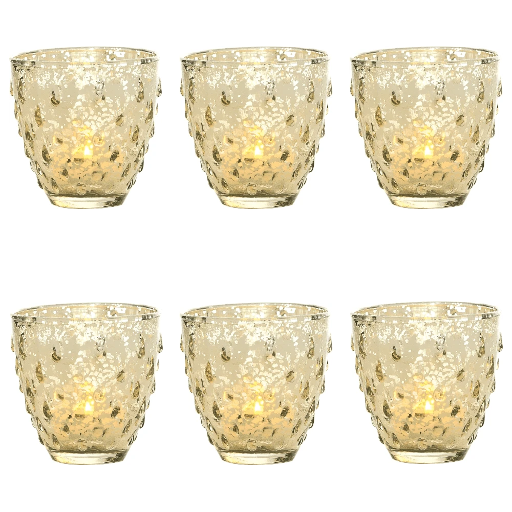 Beautifully-Designed Small Deborah Mercury Glass Votive or Tea Light Candle Holder