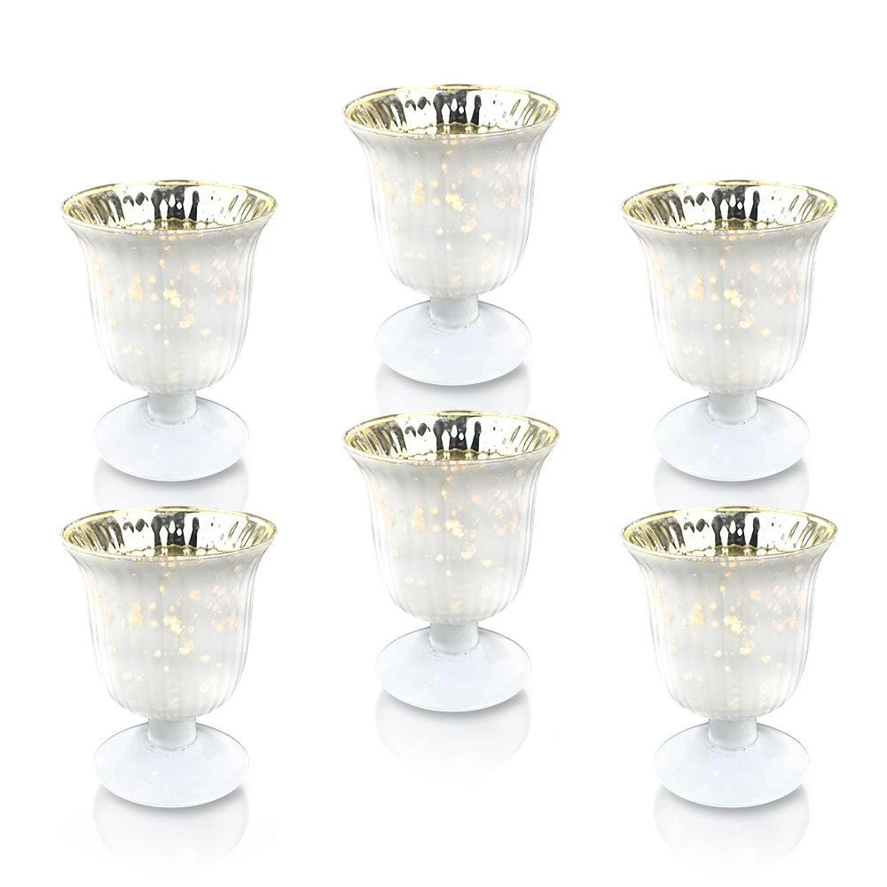 6 Pack | Vintage Mercury Glass Candle Holders (5-Inch, Emma Design, Fluted Urn, Pearl White) – Decorative Candle Holder – For Home Decor, Party Decorations, And Wedding Centerpieces