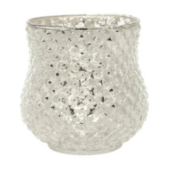 Set of 6 Pearl White Emma Mercury Glass Urn Candle Holder – This 5-inch tall mercury glass candle holder is urn shaped and will be an awesome centerpiece to your holiday or wedding reception tables! Product Specifications Measurements: 4-inch diameter x 5-inches high. Food Use?: No Candle: For use with battery operated or real tea light *Please Note: As these are hand-crafted items, each piece may vary slightly in appearance from one another.