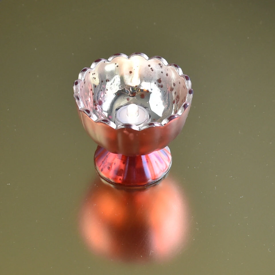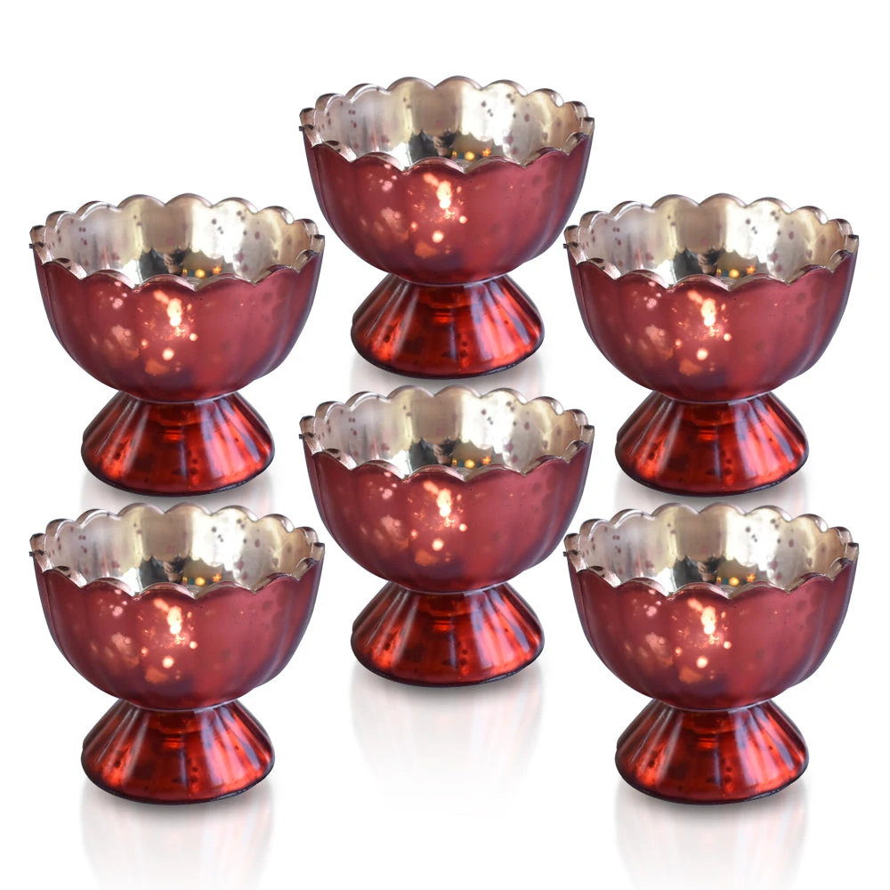 BLOWOUT 6 Pack | Vintage Mercury Glass Chalice Candle Holders (3-Inch, Suzanne Design, Sundae Cup Motif, Rustic Copper Red) – For Use With Tea Lights – For Home Decor, Parties And Wedding Decorations