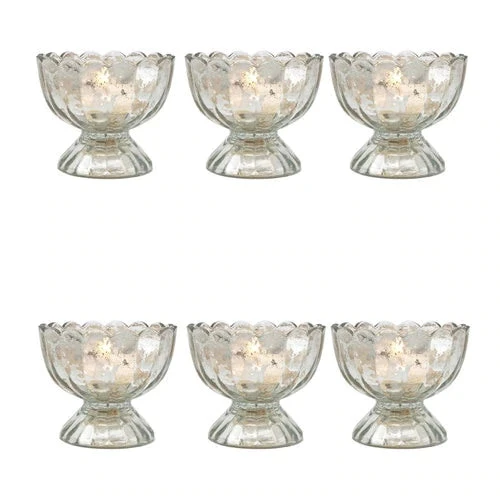 Our silver rounded chalice mercury glass candle holder is the perfect addition to your holiday tables or as gifts for your wedding guests!