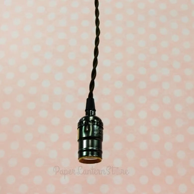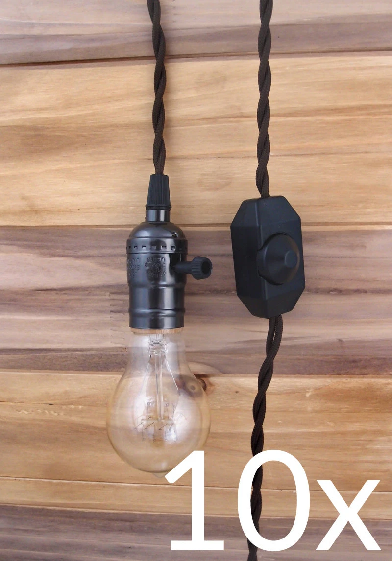 BLOWOUT BULK PACK (10) Single Pearl Black Socket Pendant Light Lamp Cord Kits W/ Dimmer Switch (11FT, Brown Cloth)