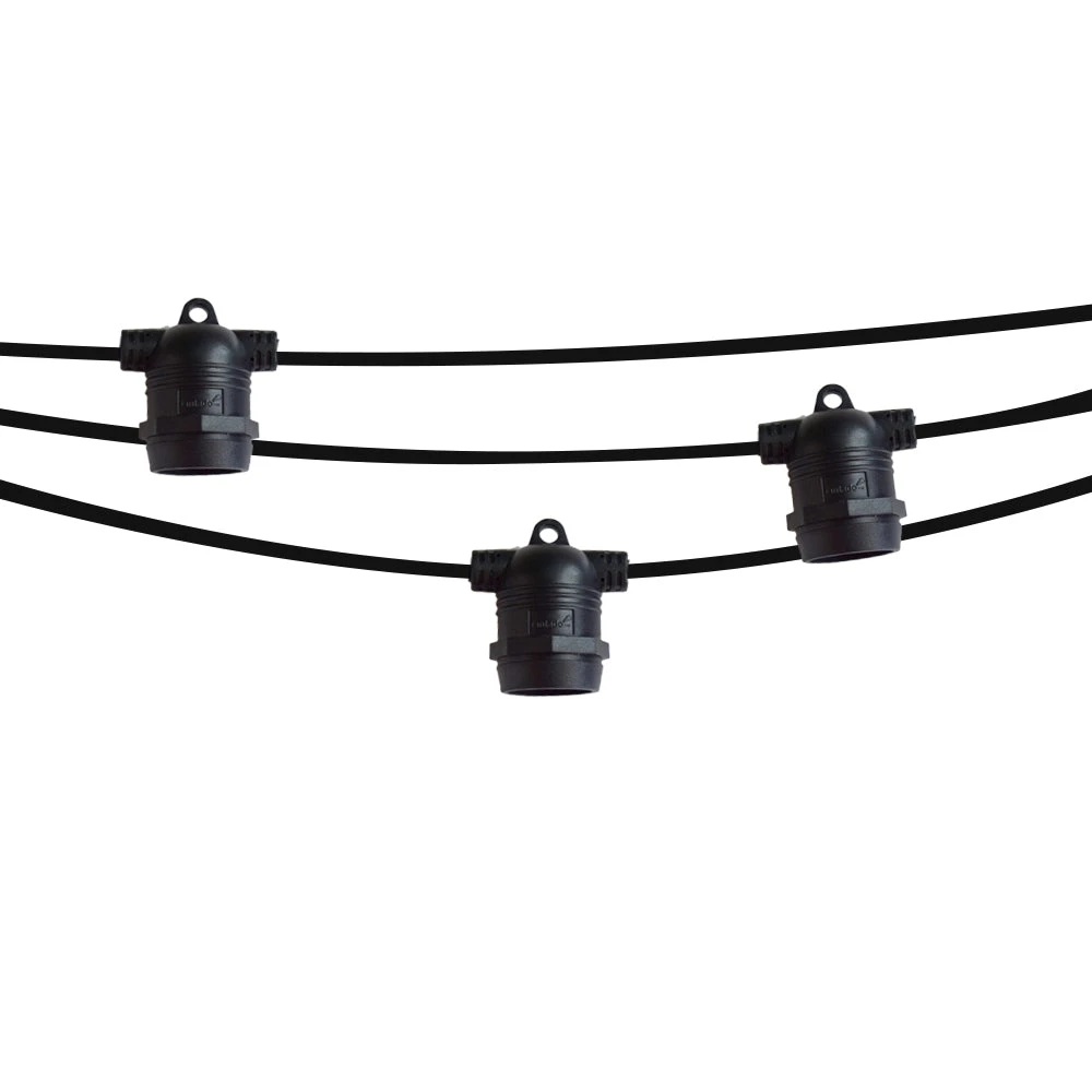 This Weatherproof SJTW Commercial Grade Patio String Light with NO BULBS is a great option for Wedding Receptions, lighting tents, building outlines, backyards / patios, gazebos, parks or any other permanent lighting needs. Since these DO NOT include Light Bulbs, you are free to add your own Edison Bulbs, Shatterproof Bulbs, or Colored Bulbs. Our hanging outdoor stringer adds romantic lighting to the atmosphere – just plug them into a wall socket and they can be hung on tents, trees, poles, posts or any elevated surface in or around your home. Add a touch of whimsy to the outdoors as our string lights and optional bulbs are ready for any occasion!