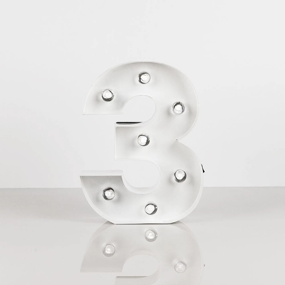 These number ‘3’ Vegas-like glamour lights are professionally made and are extremely popular as Vintage 3D room decoration and event signage. Each battery powered letter or number is made of heavy, solid metal and can be hung (has keyhole slot in back for easy hanging) on walls, mantels or placed on top of a reception table during your event or celebration. Newlyweds for example, will highlight their union by combining first initials ‘J’ and ‘M’ with ‘&” to create a whimsy showpiece on the cake or candy table during their Wedding. Our illuminated marquee lights are highly versatile and portable as they measure just 8 Inches tall, 2 inches thick, and will take 2x AA batteries so they are not too oversized and will not need to be plugged into an electrical outlet.