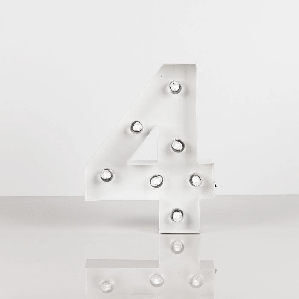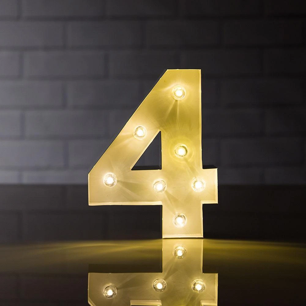 These number ‘4’ Vegas-like glamour lights are professionally made and are extremely popular as Vintage 3D room decoration and event signage. Each battery powered letter or number is made of heavy, solid metal and can be hung (has keyhole slot in back for easy hanging) on walls, mantels or placed on top of a reception table during your event or celebration. Newlyweds for example, will highlight their union by combining first initials ‘J’ and ‘M’ with ‘&” to create a whimsy showpiece on the cake or candy table during their Wedding. Our illuminated marquee lights are highly versatile and portable as they measure just 8 Inches tall, 2 inches thick, and will take 2x AA batteries so they are not too oversized and will not need to be plugged into an electrical outlet.