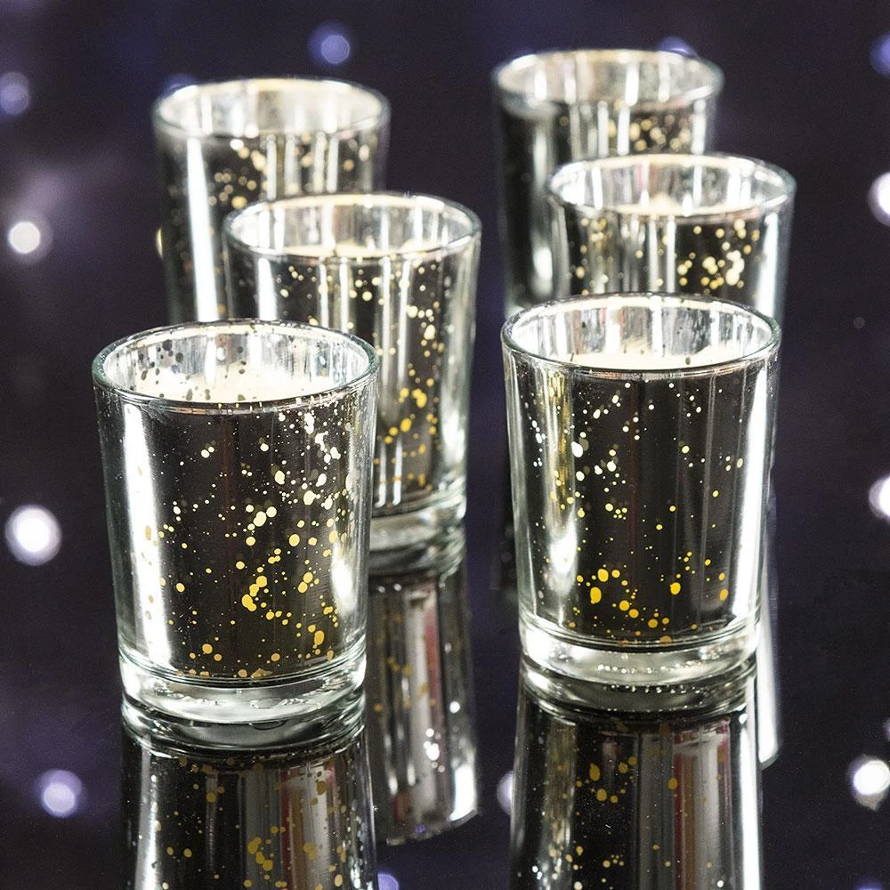 PaperLanternStore introduces our new Exclusive line of Votive Candle Holders! Our unique painting process creates our one-of-a-kind mercury glass! No two are the same which adds to uniqueness it brings to your table setting. Your guests will enjoy the light shone through our unique one-of-kind pattern, adding a chic, modern charm to your elegant celebrations. This gorgeous candle holder can be used with any standard size votive candle (< 2.5 Inches) and goes especially well with our Flameless Tea Light Candles, Table Top Decor, and Paper Lanternsi. You can also suspend one using ribbon or wire to create a hanging votive candle holder. These sleek, elegant pieces shine as centerpiece decorations and accent pieces. With a little bit of creativity, you can come up with all sorts of votive candle holder ideas to add the perfect touch to your event.