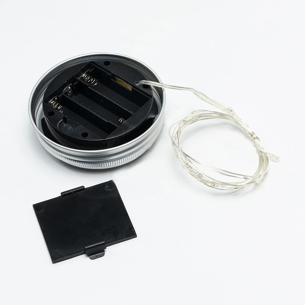 – Included with purchase, one lid with attached LED lights; mason jar not included