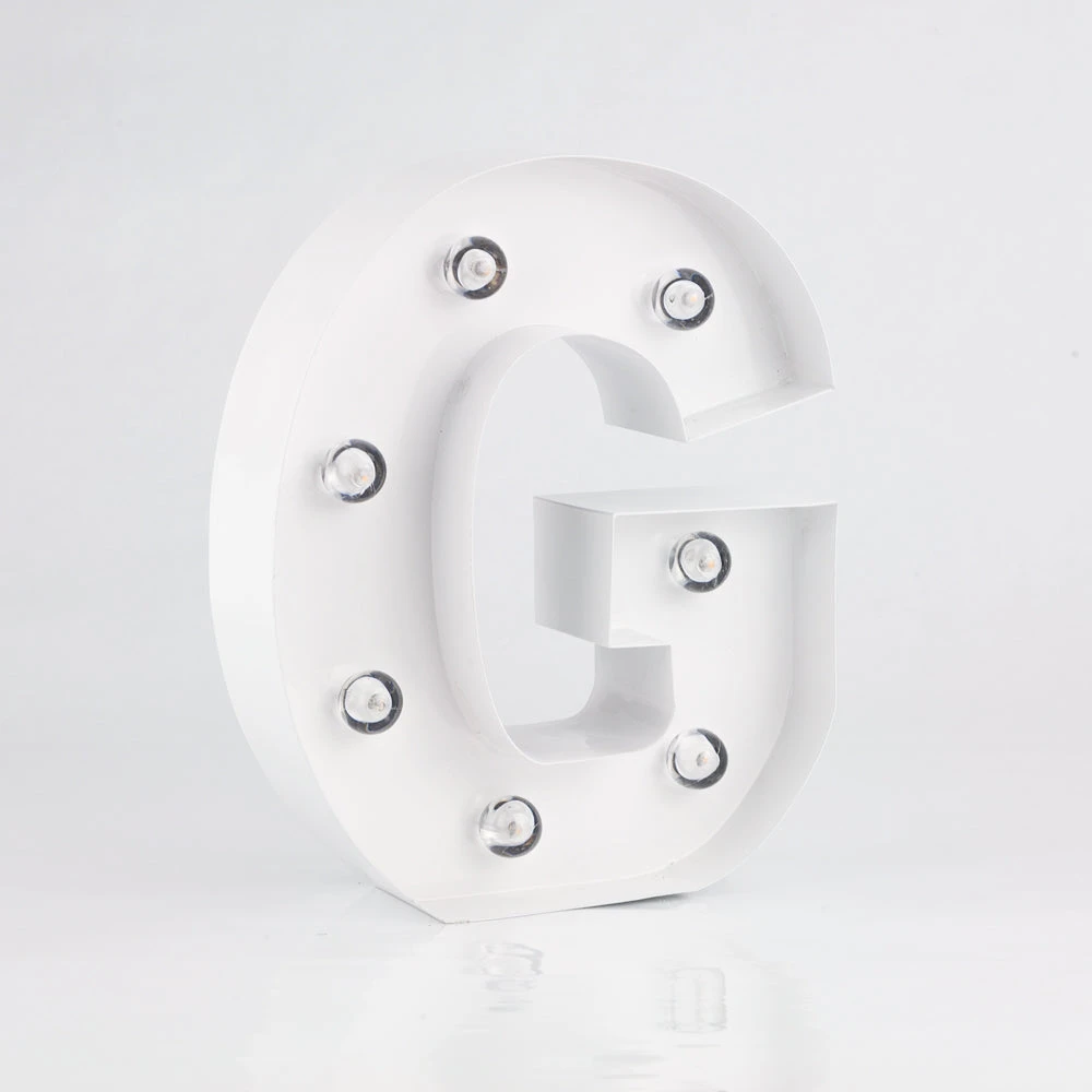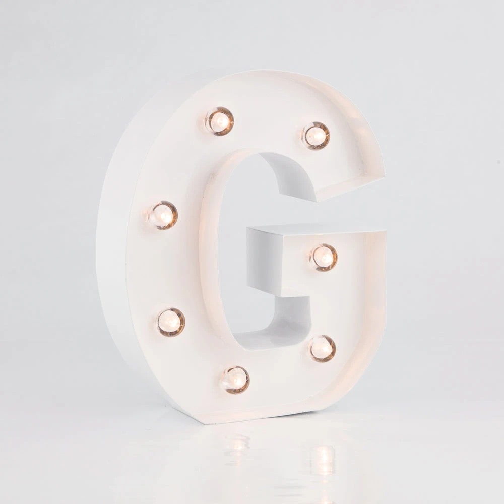 These ‘G’ Vegas-like glamour lights are professionally made and are extremely popular as Vintage 3D room decoration and event signage. Each battery powered letter or number is made of heavy, solid metal and can be hung (has keyhole slot in back for easy hanging) on walls, mantels or placed on top of a reception table during your event or celebration. Newlyweds for example, will highlight their union by combining first initials ‘J’ and ‘M’ with ‘&” to create a whimsy showpiece on the cake or candy table during their Wedding. Our illuminated marquee lights are highly versatile and portable as they measure just 8 inches tall, 2 inches thick, and will take 2x AA batteries so they are not too oversized and will not need to be plugged into an electrical outlet.