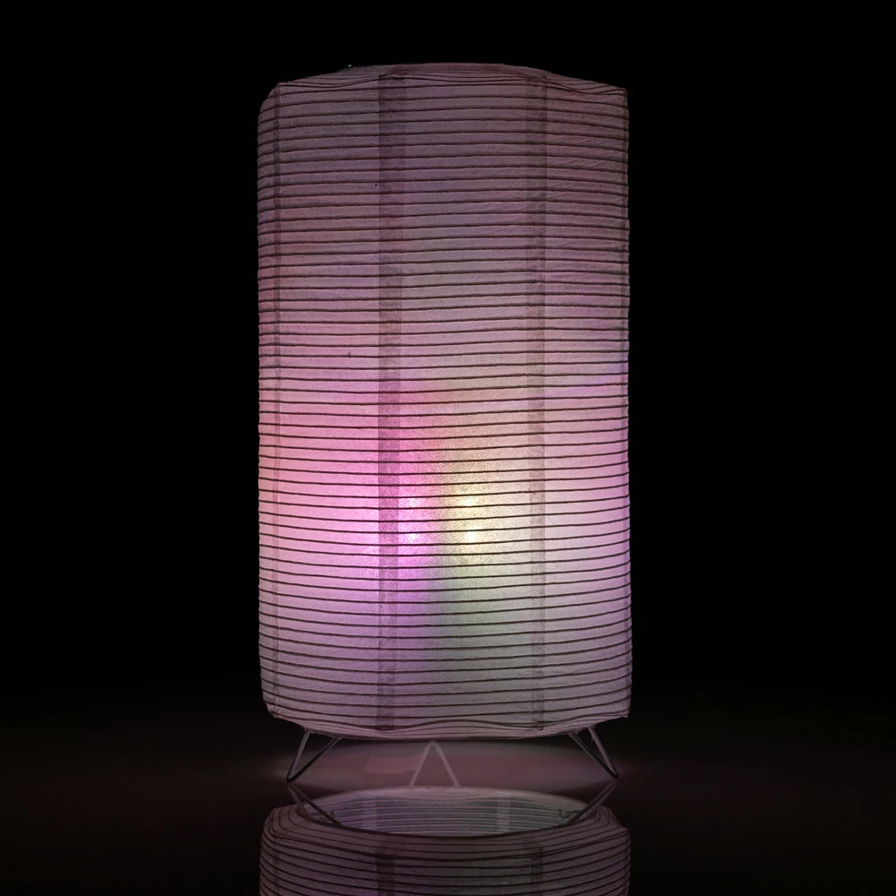 Included in this table centerpiece lantern lamp kit, you will find our Cynlinder Fine Line Japanese Paper Lantern illuminated by the battery-operated Color-Changing Omni360 LED Light. Our beautiful Paper Lanterns have extra-tight ribbing making them suitable for precious Weddings ceremonies and outdoor parties. The Omni360 light sits inside the specially built frame within the lantern and provides light for up to 12+ hours (*actual time depends on batteries). A remote to wirelessly control the brightness and function of the Table Lamp is also included.