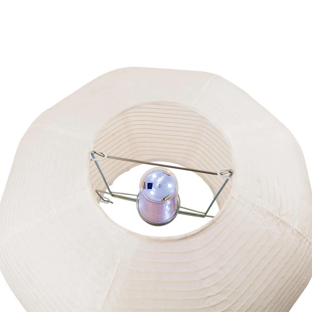 Included in this table centerpiece lantern lamp kit, you will find our Cynlinder Fine Line Japanese Paper Lantern illuminated by the battery-operated Cool White Omni360 LED Light. Our beautiful Paper Lanterns have extra-tight ribbing making them suitable for precious Weddings ceremonies and outdoor parties. The Omni360 light sits inside the specially built frame within the lantern and provides light for up to 12+ hours (*actual time depends on batteries). A remote to wirelessly control the brightness and function of the Table Lamp is also included.