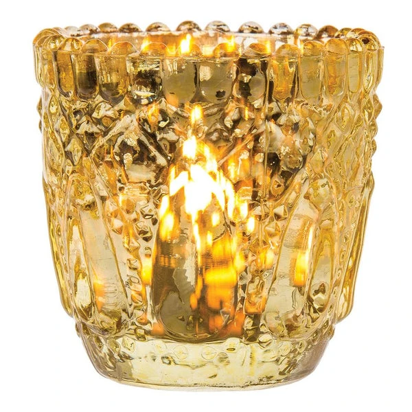 Faceted Vintage Mercury Glass Candle Holder (2.75-Inch, Lillian Design, Gold) – For Use With Tea Lights – For Home Decor, Parties And Wedding Decorations