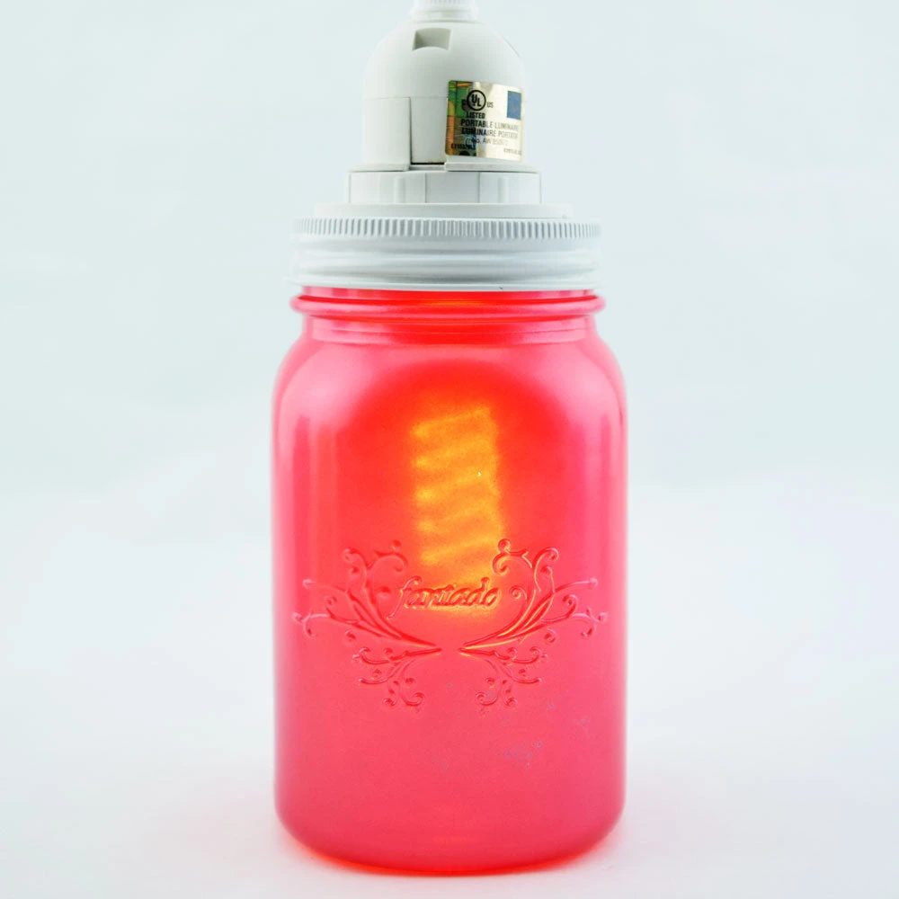 Fantado Frosted Fuchsia / Hot Pink Mason Jar Pendant Light Kit, Regular Mouth, White Cord, 15FT