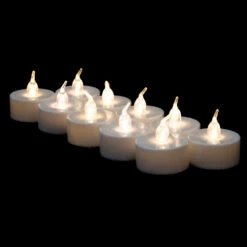 Perfect table decoration for Weddings, Receptions, Holidays, Parties, restaurants or all occasions. There are few things more mesmerizing than the simple beauty that comes from a burning candle. The intrinsic shortcomings of a burning flame, however (cost, hassle, fire hazard, etc.), lead to the search of other options in soft lighting decor. Our 12-packs of LED “tea lights” are the economical, safe, and attractive alternative to the annoyance of dealing with life flames. We offer our 12 packs of LED candles with white bases in four different flame colors: cool white, warm white, blue, red, or amber. Powered by an included high capacity Lithium battery, you can enjoy the continual use of 24 hours of light. Simply flip on the switch, and these lights will emit a natural flickering light. For decorating, try pairing these lights with any of our tea light holders, hurricane lanterns, table top lanterns, or explore the wedding decoration section for more ideas. Just as elegant sitting alone in the middle of a table as they are placed in a vase, covered with glass beads, these versatile lights let your designs breath with unencumbered freedom for under $1.00 apiece.
