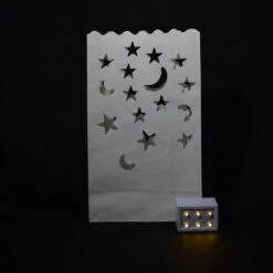 White Star Moon Paper Luminaries / Luminary Lantern Bags Path Lighting (10 PACK)