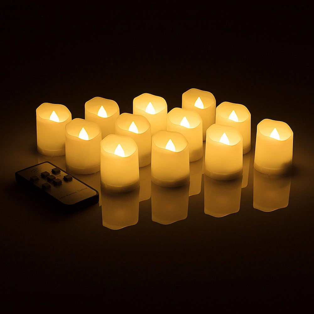 Long-Lasting Flameless LED Battery Operated Tea Lights W/ Remote Control, Timer, Dimmable, Weatherproof (12-PACK)