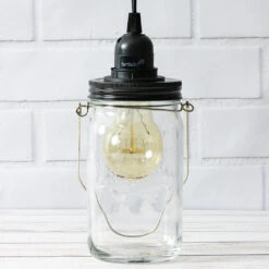 BLOWOUT Fantado Mason Jar Pendant Light Kit, Wide Mouth, Black Cord, 15FT