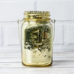 BLOWOUT (3-Pack) Fantado Regular Mouth Gold Mercury Glass Mason Jar With Handle, 16oz / 1 Pint
