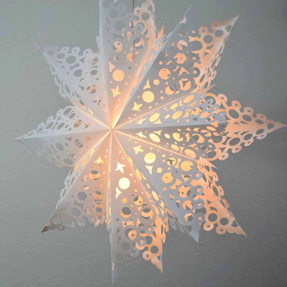 Our intricately cut, lacy and lovely paper star lantern decorations are truly exquisite and perfect for holiday decorating and beyond. Made of durable heavy paper, these paper star lanterns can be used as home decor or party and event decorations, indoor or outdoor!