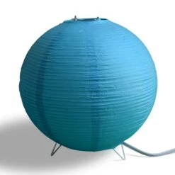 Turquoise Blue Corded Round Table Top Lantern Lamp Kit W/ Light Bulb, Fine Line Paper Moon