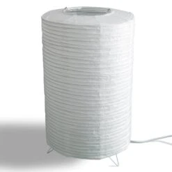 Beige/Ivory Corded Round Table Top Lantern Lamp Kit W/ Light Bulb, Fine Line Paper Moon