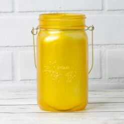 BLOWOUT (6-Pack) Fantado Wide Mouth Frosted Yellow Gold Color Mason Jar W/ Handle, 32oz