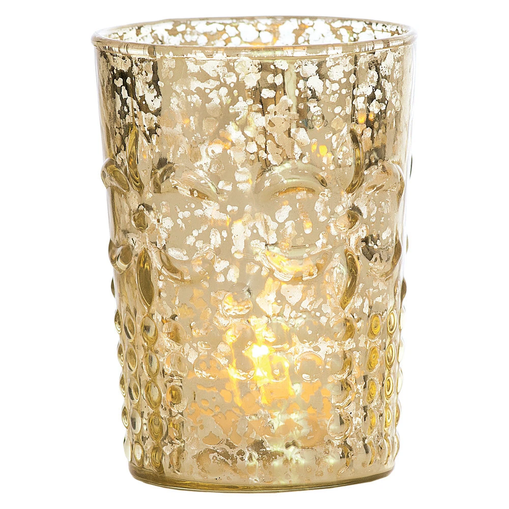 Beautifully-Designed Mercury Glass Votive or Tea Light Candle Holder